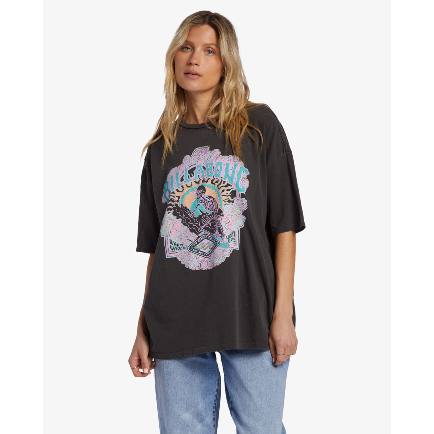 Polo Para Mujer Manga Corta Warm Waves Negro Billabong. El polo para mujer Warm Waves está confeccionada con un suave punto de algodón, con un efecto teñido con pigmentos para una apariencia única y una serigrafía en el pecho.