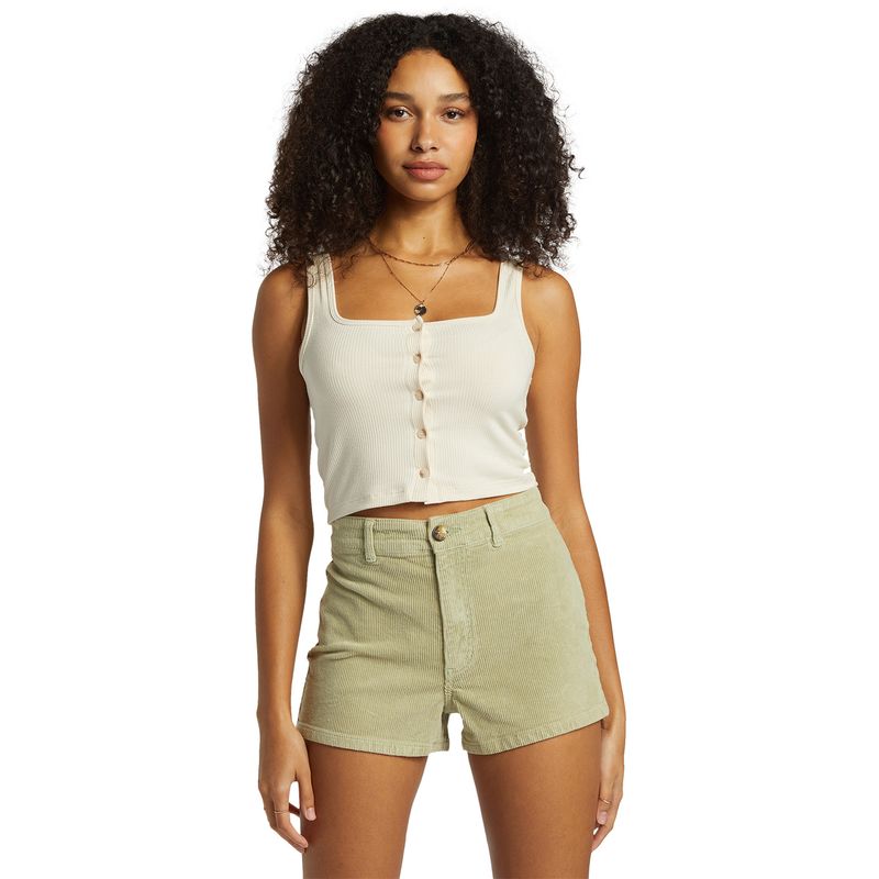 Short Para Mujer Free Fall Cord Verde Billabong. El short para mujer Free Fall de corduroy cuenta con un tiro alto y con bolsillos traseros.