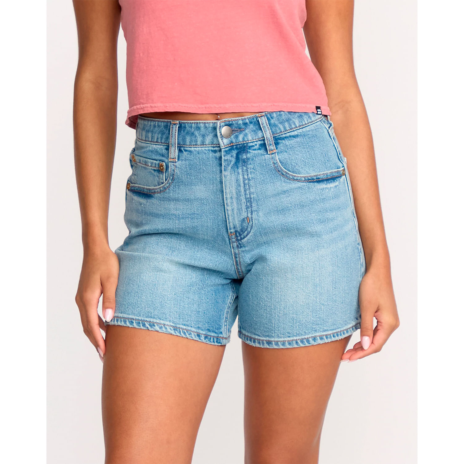 Shorts Para Mujer Shorts Shifter Celeste Billabong. El short para mujer Shifter de tiro alto combina comodidad y estilo con un corte regular que favorece a todo tipo de cuerpo. Su tejido de mezcla de algodón se adapta a tus movimientos, mientras que sus cinco bolsillos te mantienen a mano lo esencial.